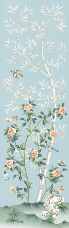 Inspired by 19th Century Chinese wallpaper in Belton House in Lincolnshire, UK, this layered beauty was designed so it could be trimmed from the top. Each panel measures 3'w x 10'h, and the full repeat is 6 panels wide, with panel 6 connecting to panel 1. Panels can be ordered individually in any quantity, and the minimum order is 1 panel.