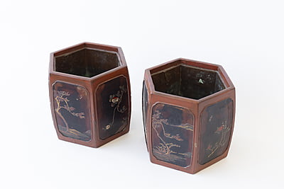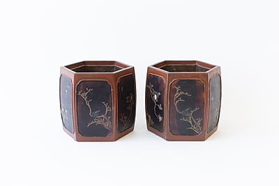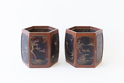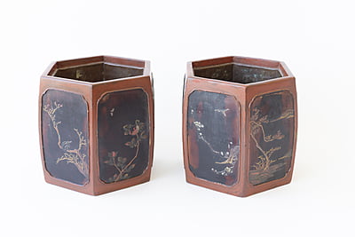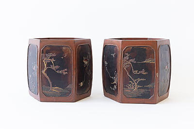 Pair of Japanese Lacquer Cache Pots