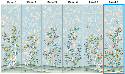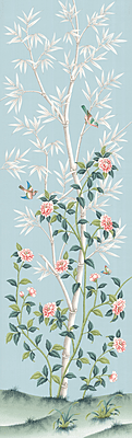 Inspired by 19th Century Chinese wallpaper in Belton House in Lincolnshire, UK, this layered beauty was designed so it could be trimmed from the top. Each panel measures 3'w x 10'h, and the full repeat is 6 panels wide, with panel 6 connecting to panel 1. Panels can be ordered individually in any quantity, and the minimum order is 1 panel.