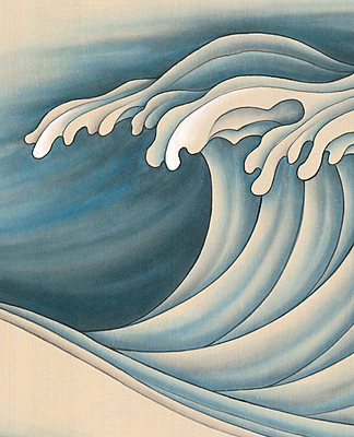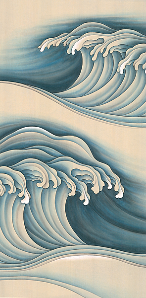 Pearlescent Waves handpainted wallpaper sample. On muslin backing. 59"H X 29.25"W.