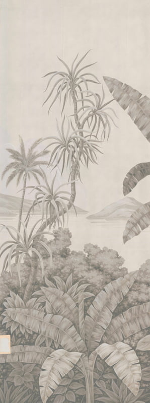 Handpainted Wallpaper Panel 36" W X 94" H Mounted on muslin fabric, with hole where outlet was on wall - note photo details. Some plaster on back of panel. This was part of a Gracie showroom installation.