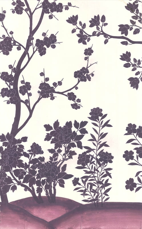Handpainted Wallpaper Panel 37.5" W X 59.5" H Rip at top right and damage to edges