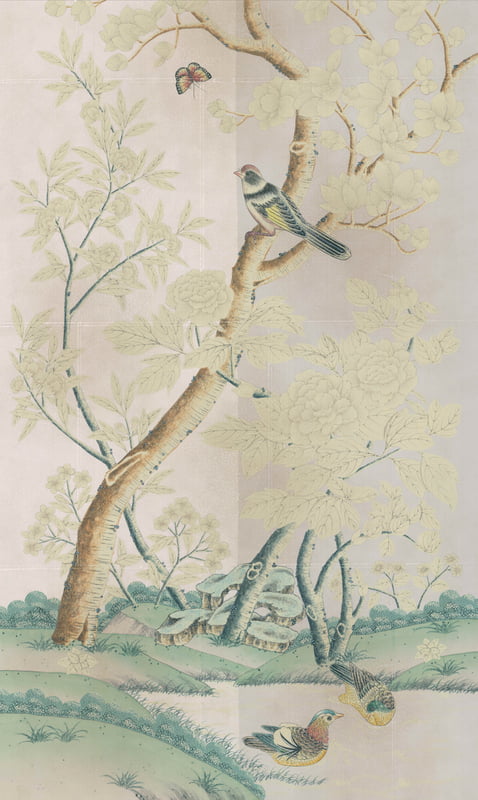 Handpainted Wallpaper panel 37.5" W X 60" H With two different gray background colors, left and right