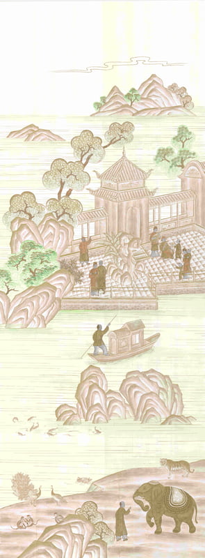 Landscape and Figure in Gold and Green on Ivory (HS-90375)