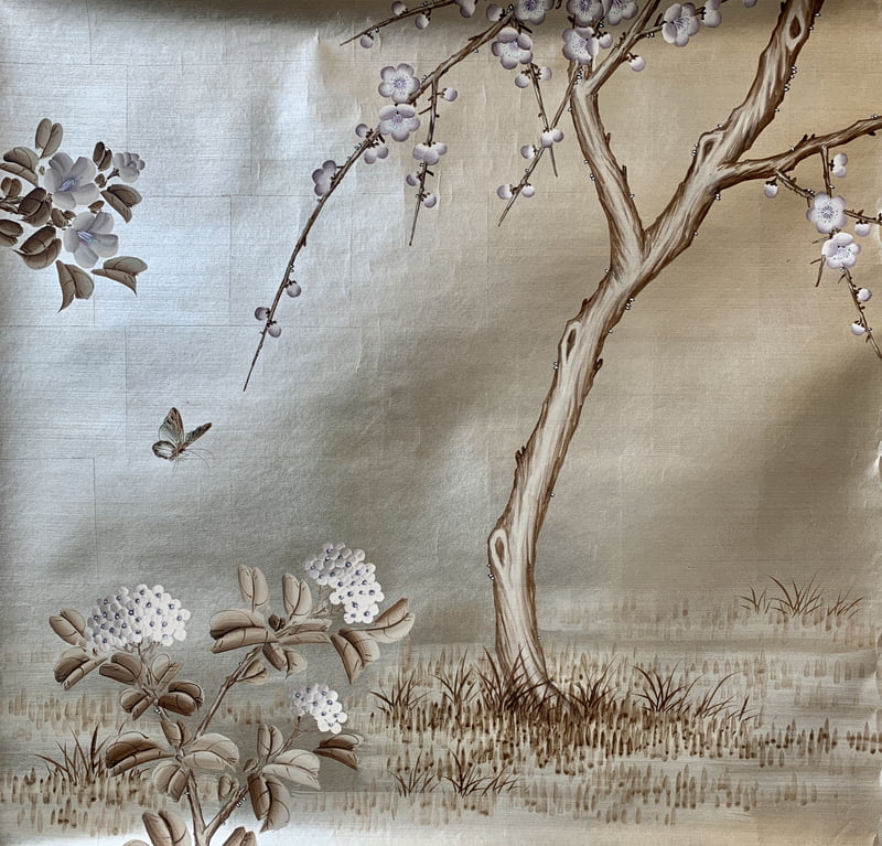 Handpainted Wallpaper Panel 39.5" W X 37.5" H Wrinkled edges