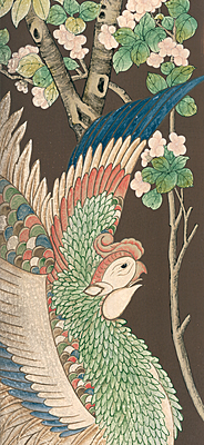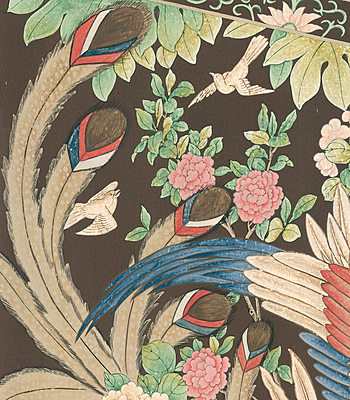 Handpainted wallpaper sample of Coromandel screen design. Minor edge damage. 97.5"H X 38"W.
