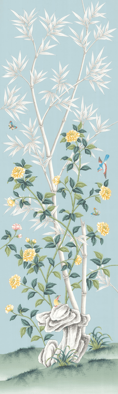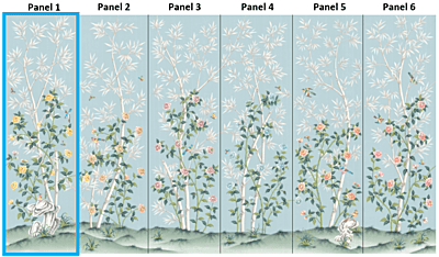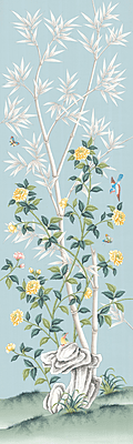 Inspired by 19th Century Chinese wallpaper in Belton House in Lincolnshire, UK, this layered beauty was designed so it could be trimmed from the top. Each panel measures 3'w x 10'h, and the full repeat is 6 panels wide, with panel 6 connecting to panel 1. Panels can be ordered individually in any quantity, and the minimum order is 1 panel.