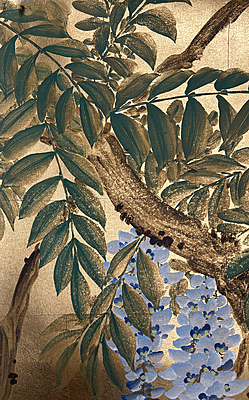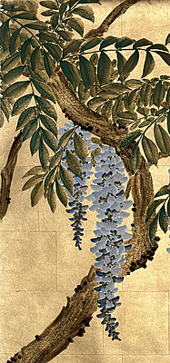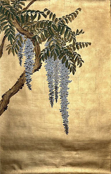 Handpainted wallpaper sample. Wisteria (SY-803) design sample. 61"H X 38"W.