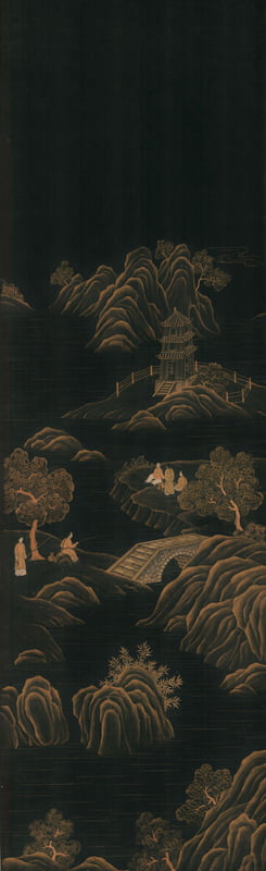 Handpainted Wallpaper Panel 38"" W X 120" H Non-pieced background, with scuffs throughout, some wrinkles, with narrow tape at edges