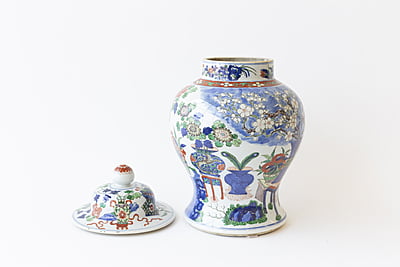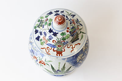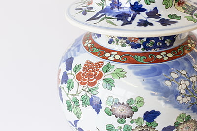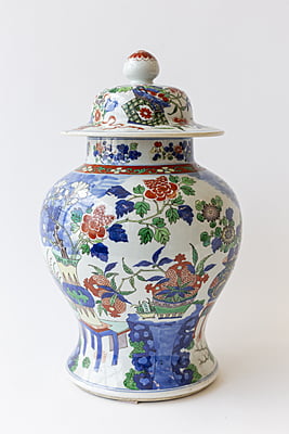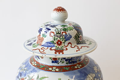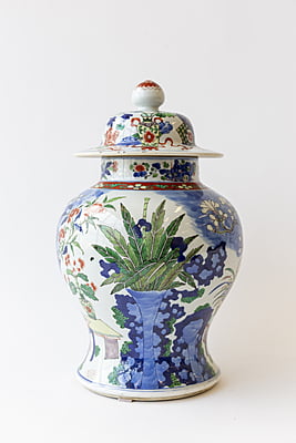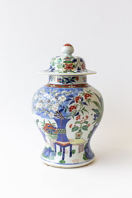 Large Wucai Temple Jar with Wooden Stand