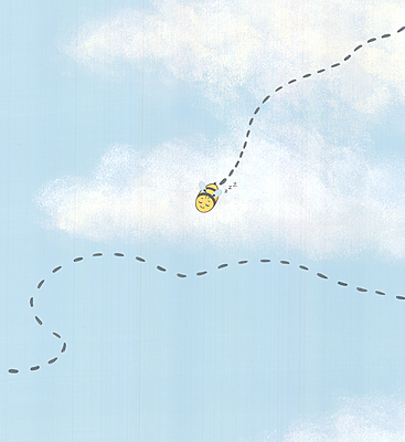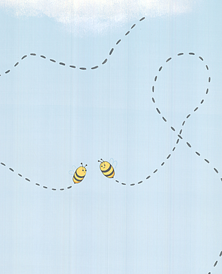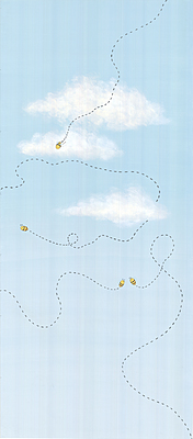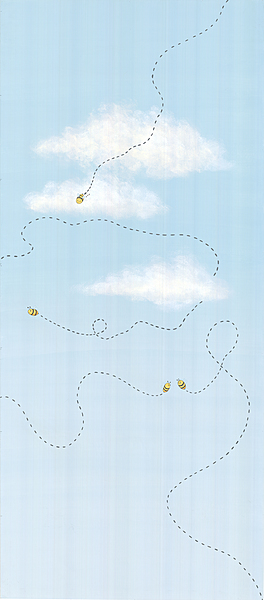 Handpainted wallpaper sample of sky with bees. 85.5"H X 37.5"W.