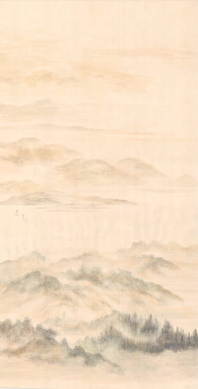 Handpainted Wallpaper Panel 37.5" W X 68.5" H Rip at top right, and wrinkles through center of panel