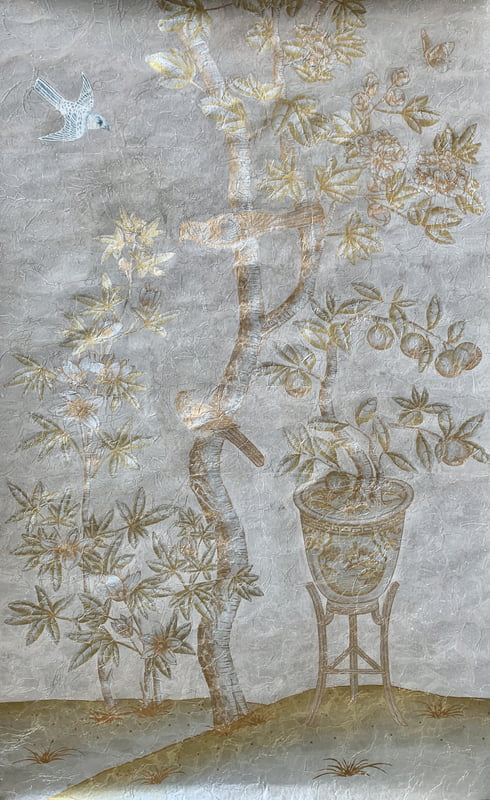 Handpainted Wallpaper Panel 37.5" W X 60" H
