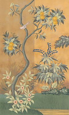 Handpainted SY-301 wallpaper sample. 62"H X 38"W. Two background color options are shown.