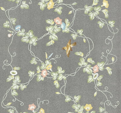 Handpainted all-over wallpaper. Each panel has identical handpainted design. 36"W X 120"H.