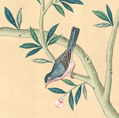 Handpainted custom SY-130 wallpaper sample. Half of this sample is antiqued. 60.5"H X 37.75"W.