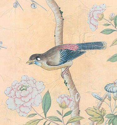 Handpainted Georgian Cream wallpaper sample. Slight tear at the upper right corner. 37.5"H X 37.5"W.