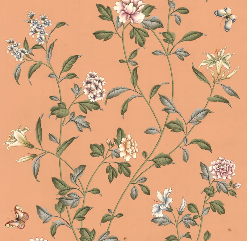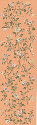 Handpainted all-over wallpaper. Each panel has identical handpainted design. 36"W X 120"H.