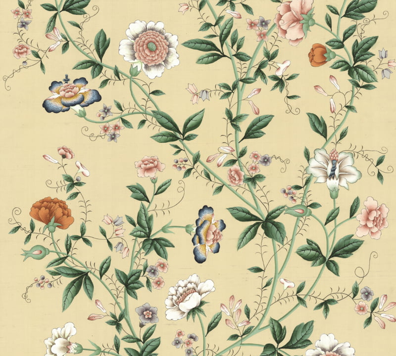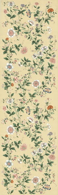 Handpainted all-over wallpaper. Each panel has identical handpainted design. 36"W X 120"H.
