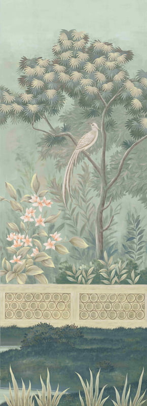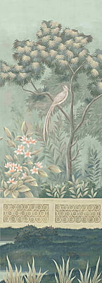 Handpainted Wallpaper panel 35.5" W X 97.5" H Mounted on muslin, with bound edges, and scattered wrinkles and chips