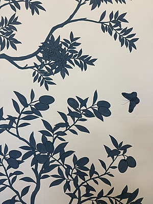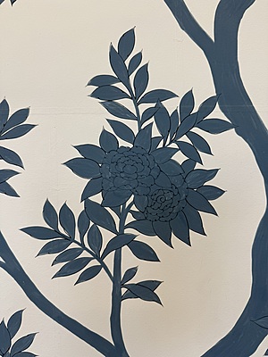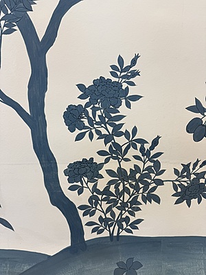 Handpainted scenic design (SY-243B) on a crisp white background. Mounted on muslin. 95.75"H X 71.5"W.