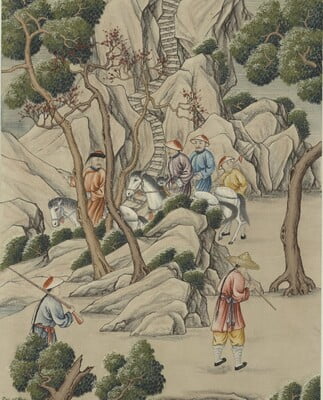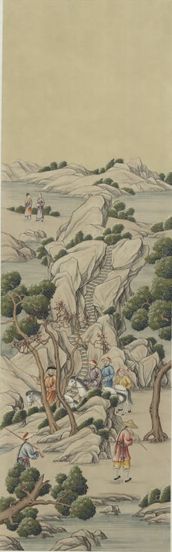 Handpainted wallpaper. 3'W X 10' overall height with a maximum design height of 7'6".