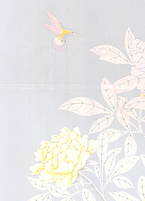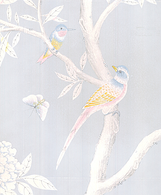 Blanc de Chine (SY-132) handpainted wallpaper sample. A few small stains and pen marks. 61"H X 38"W.