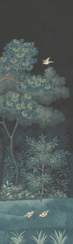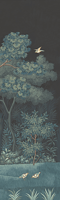 Our Grove design was inspired by Roman frescoes found intact in ancient villas and give the impression of a lush tropical garden. Our scene was designed to be able to trim from the top and/or the bottom and still envelop you in peaceful surround. Each panel measures 3'w x 10'h, and the full repeat is 6 panels wide, with panel 6 connecting to panel 1. Panels can be ordered individually in any quantity, and the minimum order is 1 panel.