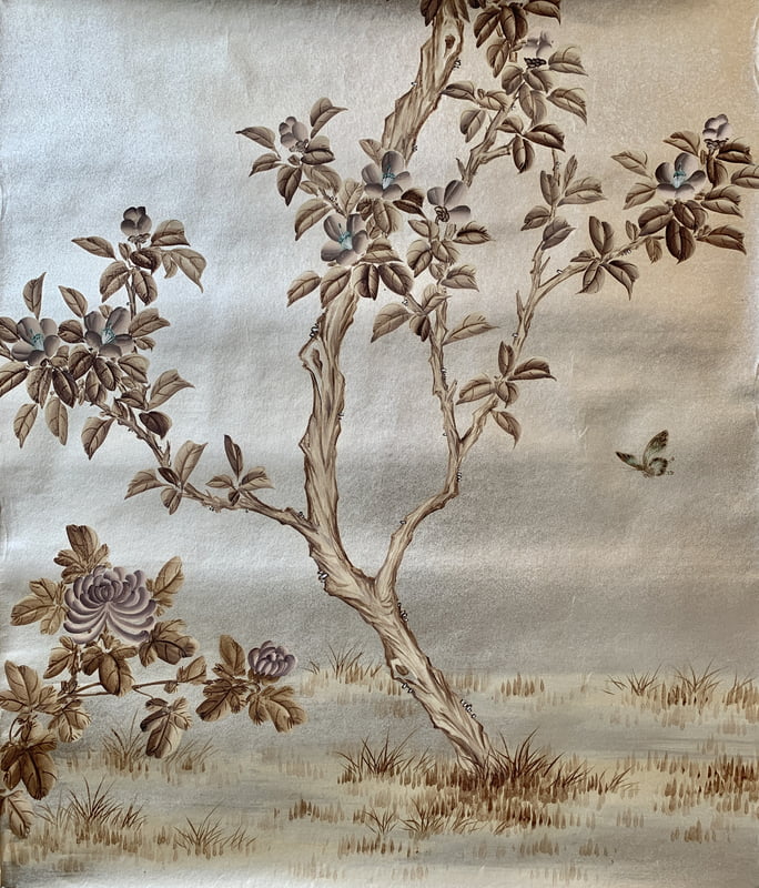 Handpainted Wallpaper Panel 37.5" W X 44" H