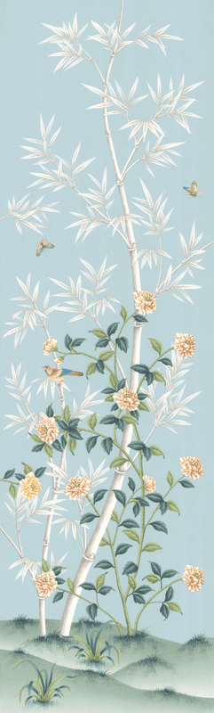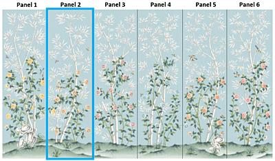 Inspired by 19th Century Chinese wallpaper in Belton House in Lincolnshire, UK, this layered beauty was designed so it could be trimmed from the top. Each panel measures 3'w x 10'h, and the full repeat is 6 panels wide, with panel 6 connecting to panel 1. Panels can be ordered individually in any quantity, and the minimum order is 1 panel.
