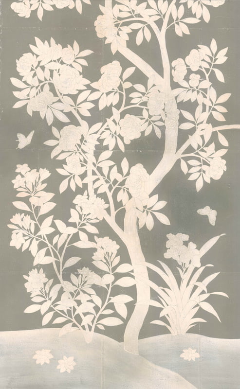 Handpainted Wallpaper Panel 37.5" W X 59.5" H Creases at left edge