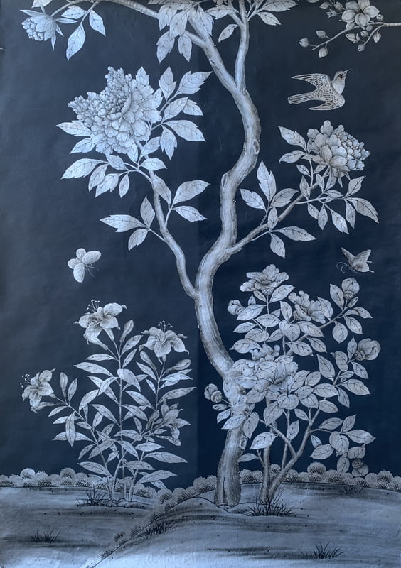 Handpainted Wallpaper panel 37.5" W X 54" H Right side lacquered