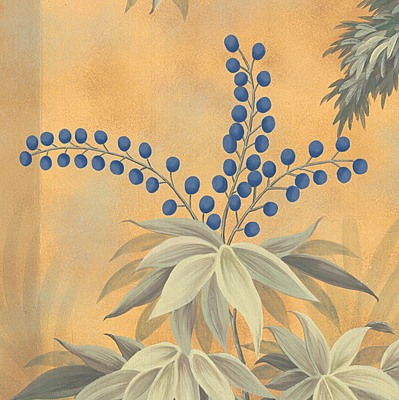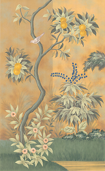 Handpainted SY-301 wallpaper sample. 62"H X 38"W. Two background color options are shown.