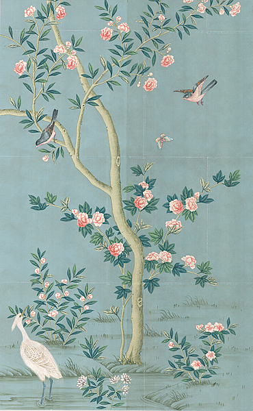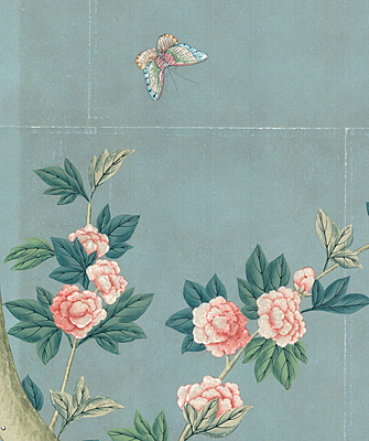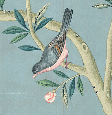 Handpainted SY-130 wallpaper sample. Half of this sample has antiquing. 60.5"H X 38"W.