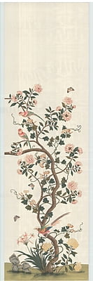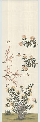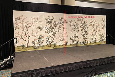 Four panels Georgian Ivory handpainted wallpaper. Mounted on muslin together. These were installed as the stage backdrop at the Antiques & Garden Show of Nashville in 2022. Some slightly raised/bubbling sections which can be adhered during installation. Panel numbers SY-704-I.41.01 through SY-704-I.44.04. 97 1/2"H X 144"W.