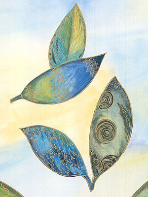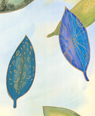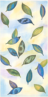 Handpainted SY-407 wallpaper sample. On muslin backing. 59"H X 29.25"W.