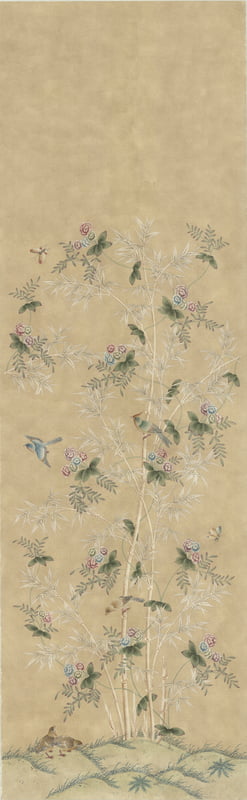 Handpainted wallpaper. 3'W X 10' overall height with a maximum design height of 7'6".