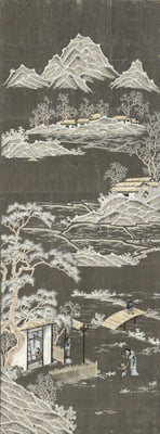 Vintage Panel with Landscape on Silver Patina (HS-90212)